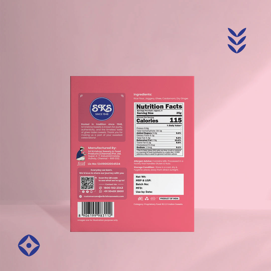 Flavourful filling a fantastic feeling! Made by frying a blend of rice four & jaggery dough, this authentic delicacy is a sure way to satisfy your sweet cravings.